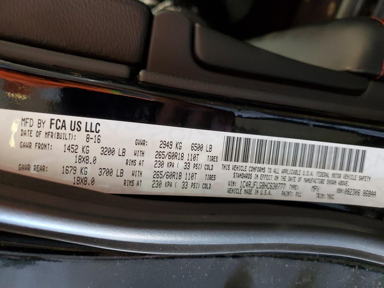 JEEP GRAND CHEROKEE 3.6 2017 г.в., 4x4 с задним приводом (1C4RJFLG8HC630777) из США