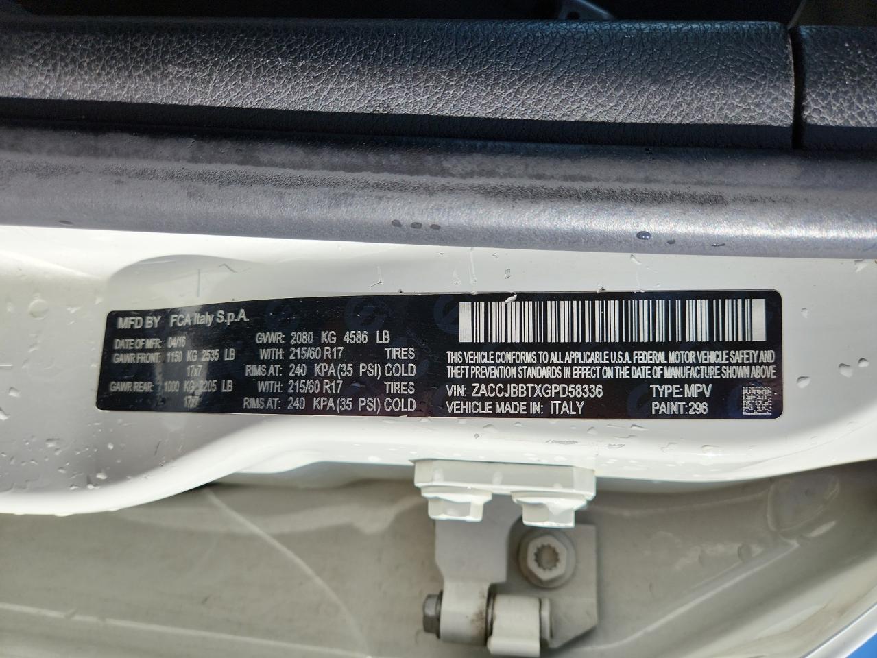 JEEP RENEGADE 2.4 2016 г.в., 4x4 с передним приводом (ZACCJBBTXGPD58336) из США