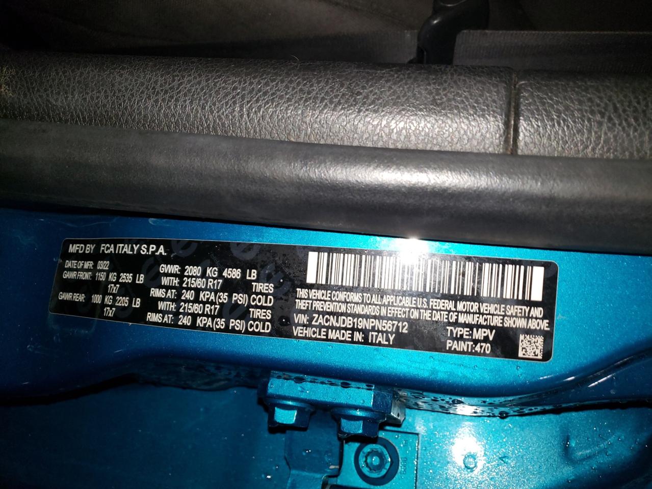 Цвет БирюзовийЦилиндры 4Привод 4x4 с передним приводомVIN ZACNJDB19NPN56712Состояние НеизвестноПовреждение Передняя или задняяДата аукциона 2025-11-04