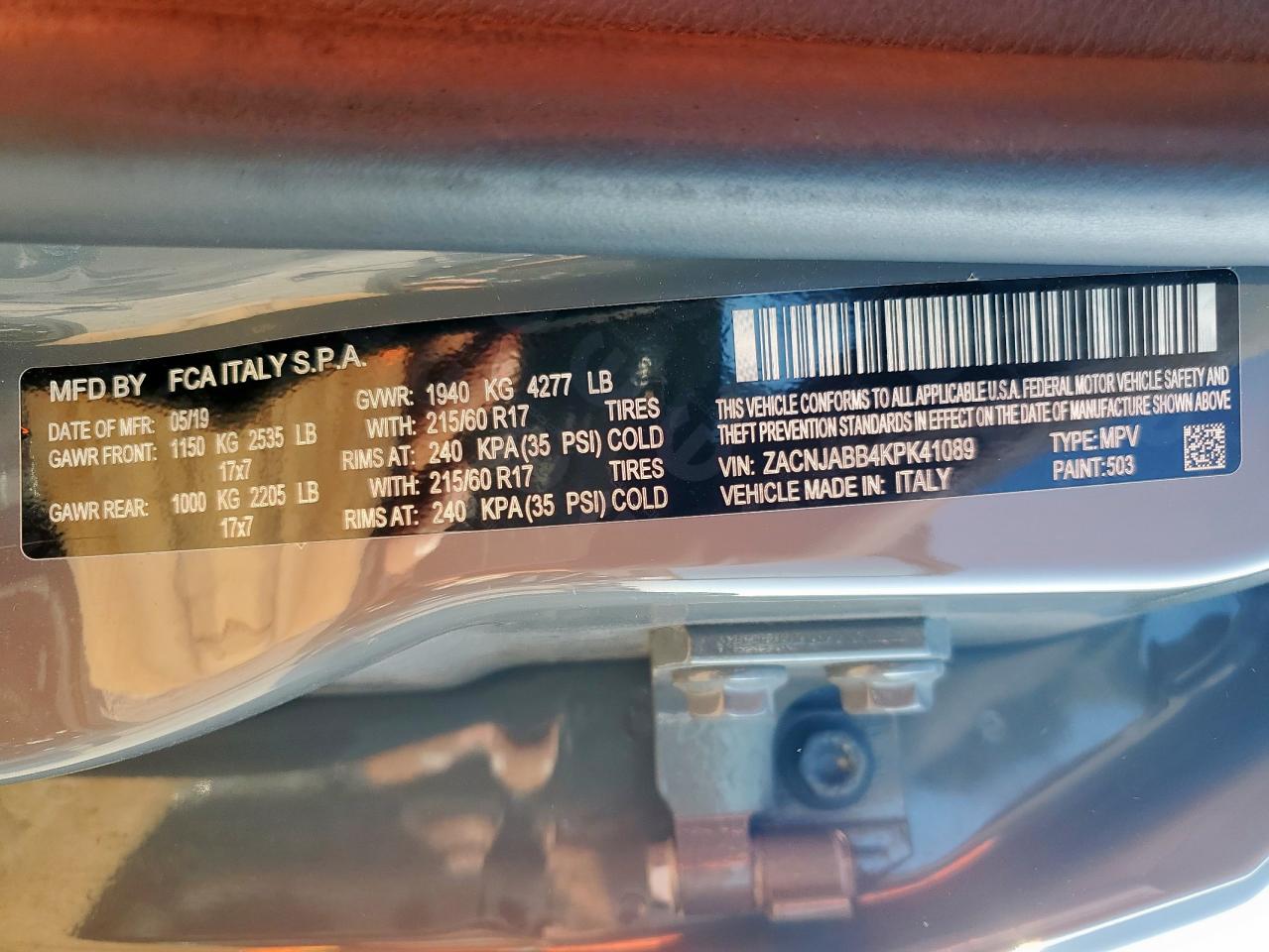 Цвет СерыйЦилиндры 4VIN ZACNJABB4KPK41089Состояние Заводится и едет (проверено)Повреждение Передняя или задняя