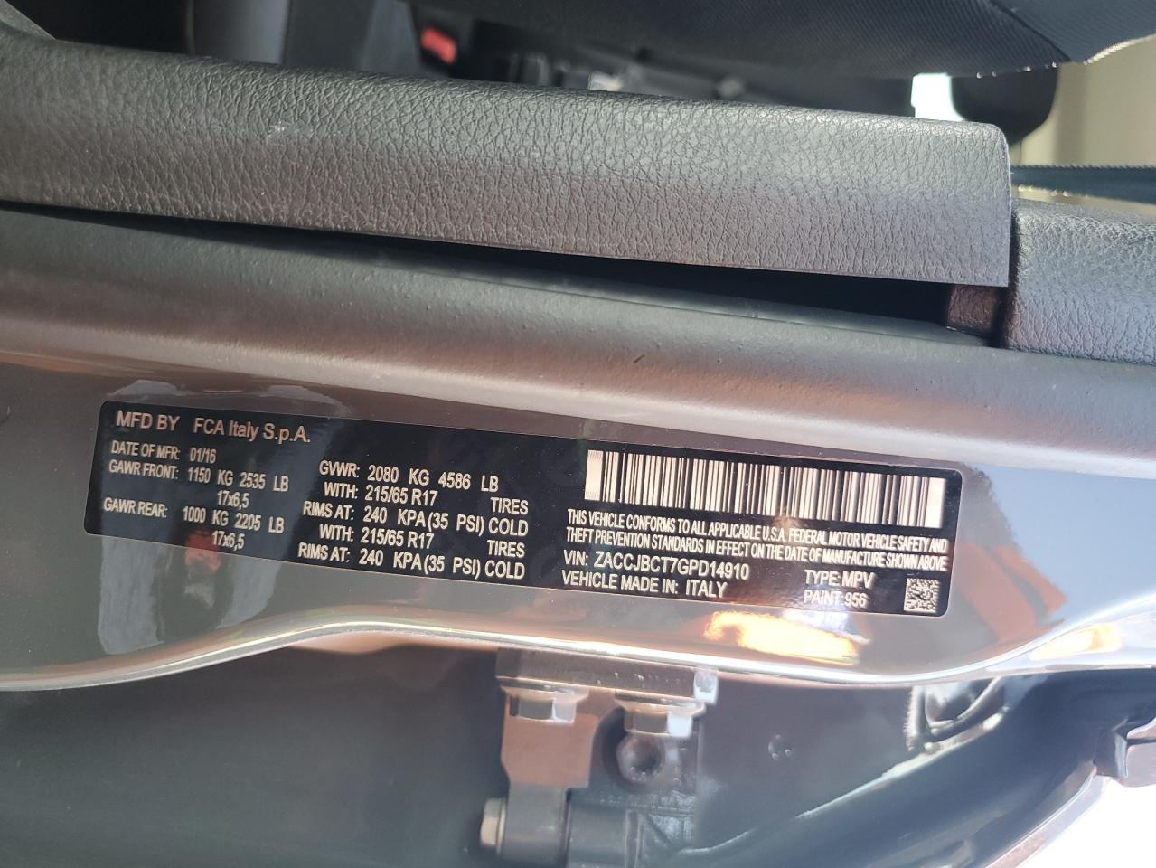 JEEP RENEGADE 2.4 2016 г.в., 4x4 с передним приводом (ZACCJBCT7GPD14910) из США