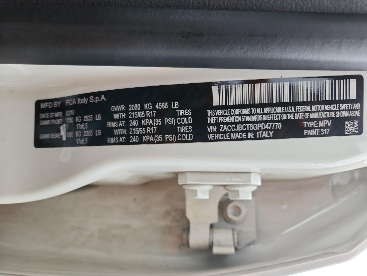 JEEP RENEGADE 2.4 2016 г.в., 4x4 с передним приводом (ZACCJBCT6GPD47770) из США