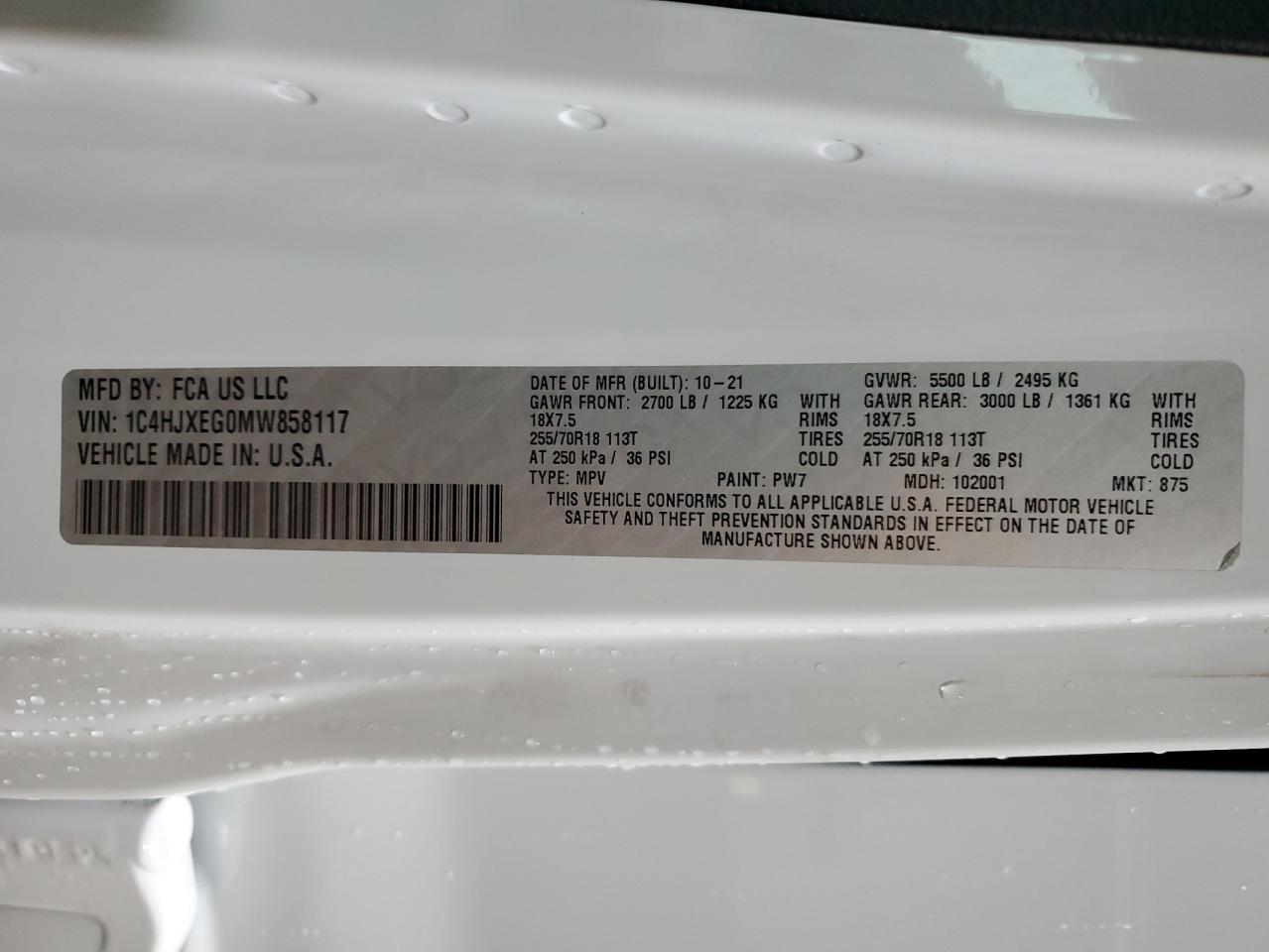 Цвет БелыйЦилиндры 6Привод 4x4 с задним приводомVIN 1C4HJXEG0MW858117Состояние ЗаводитсяПовреждение Передняя или задняяДата аукциона 2025-11-19