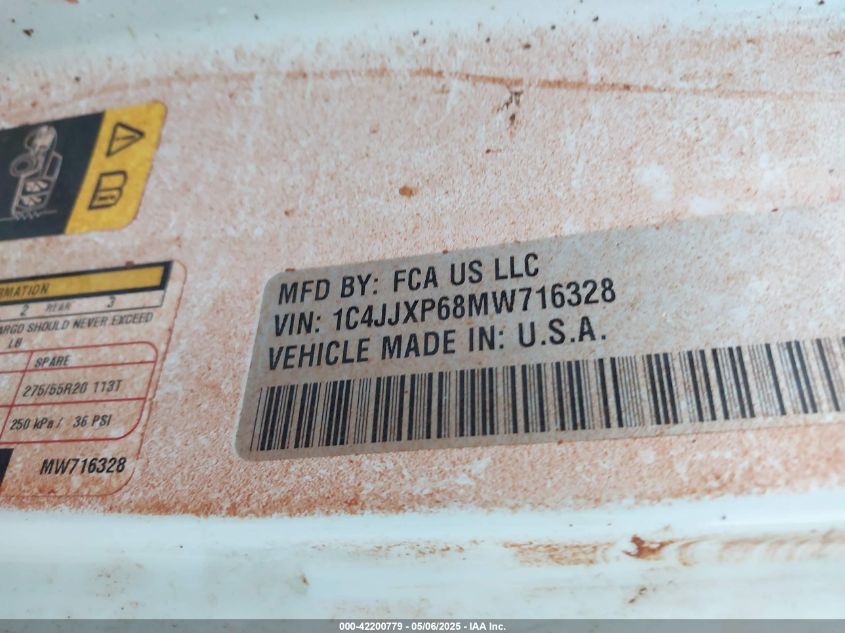 Цвет БелыйЦилиндры 4Привод Полный приводVIN 1C4JJXP68MW716328Состояние СтационарноПовреждение ВодаДата аукциона 2025-11-05