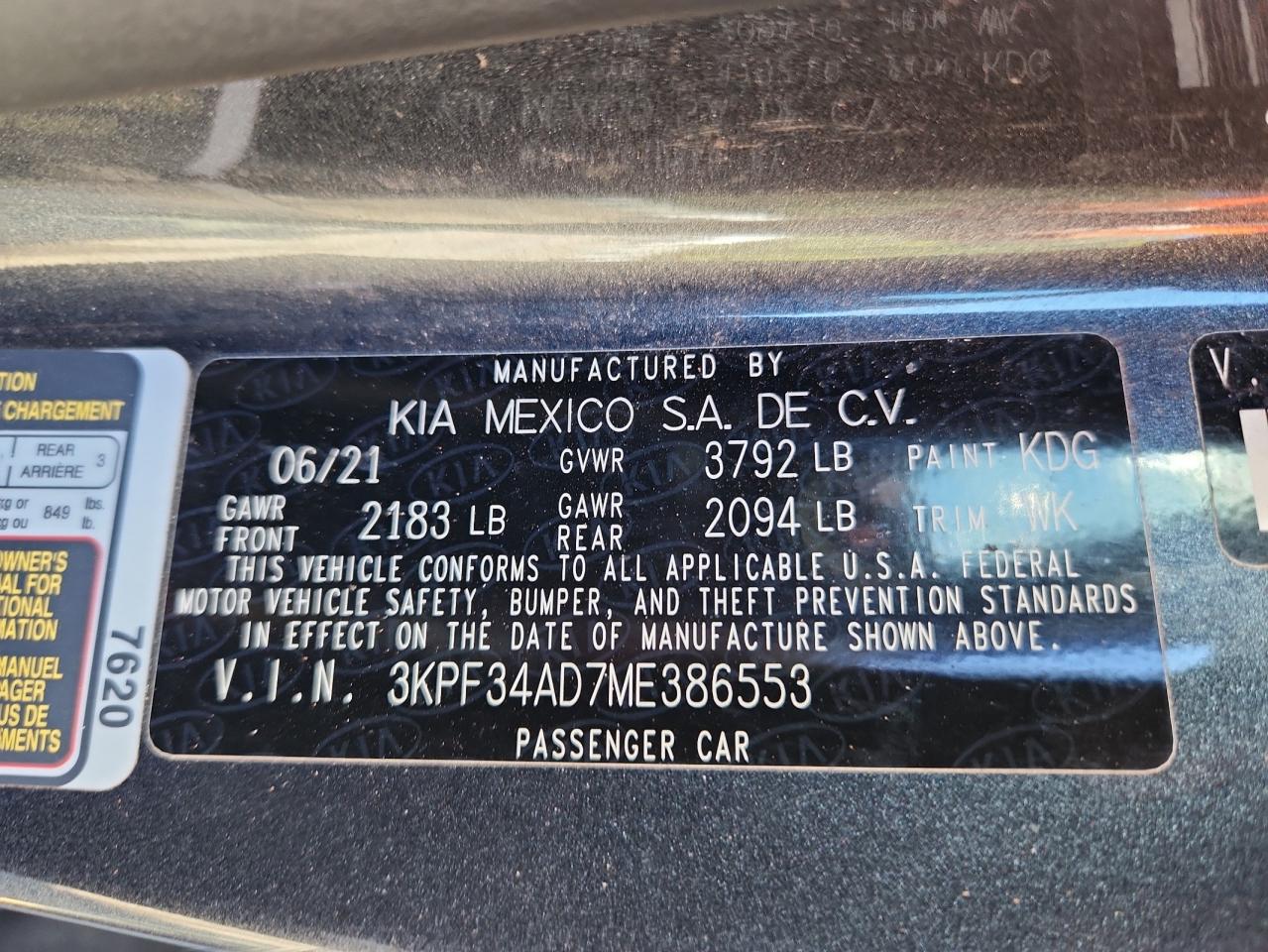 KIA FORTE 2.0 2021 г.в., (3KPF34AD7ME386553) из США