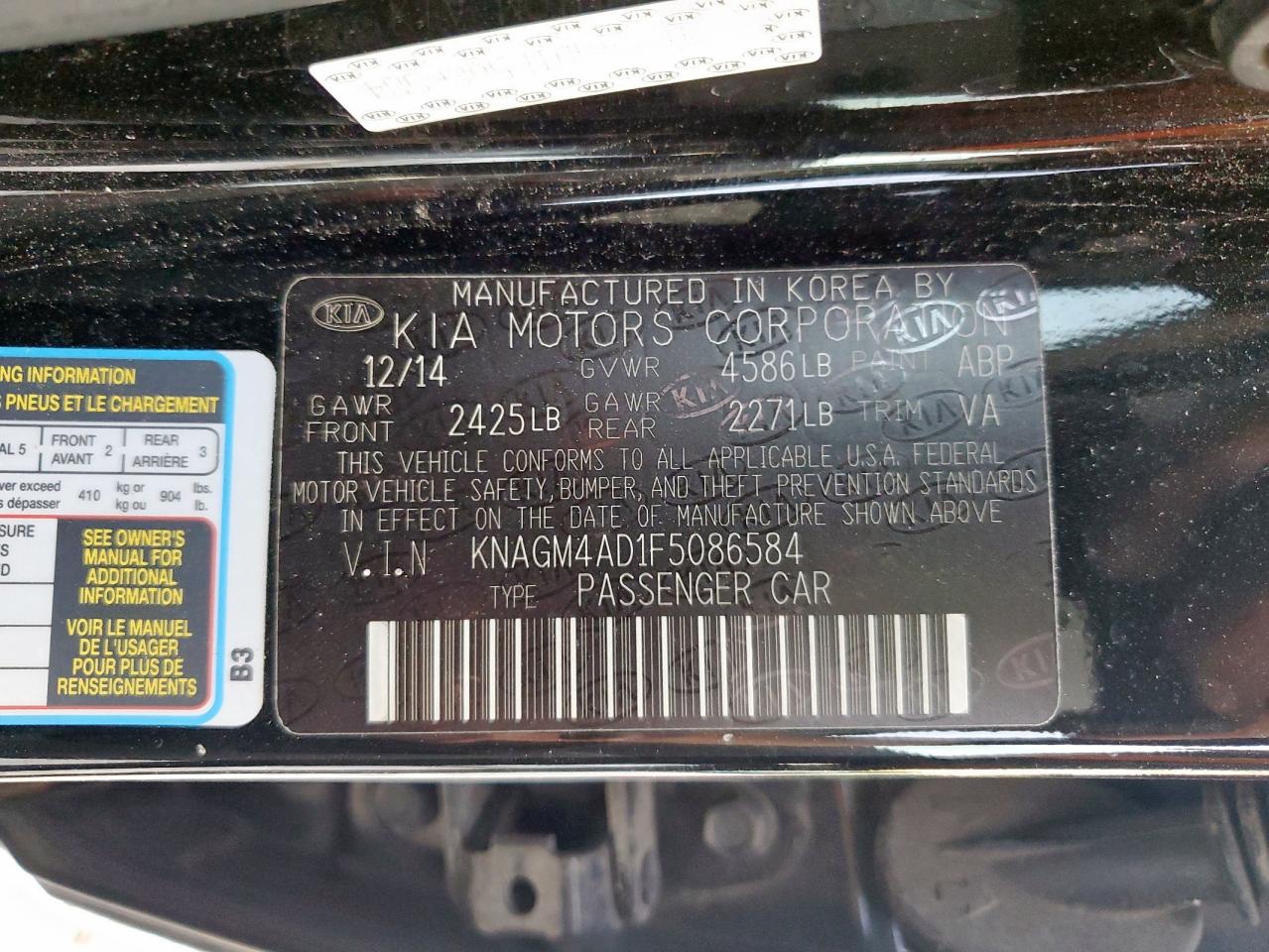 KIA OPTIMA 2.4 2015 г.в., (KNAGM4AD1F5086584) из США