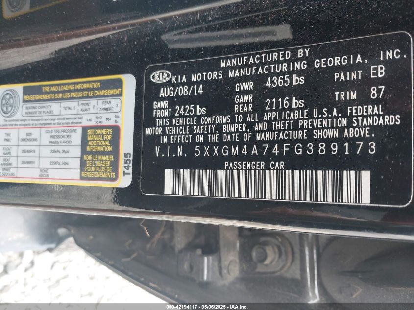 KIA OPTIMA 2.4 2015 г.в., Передний привод (5XXGM4A74FG389173) из США