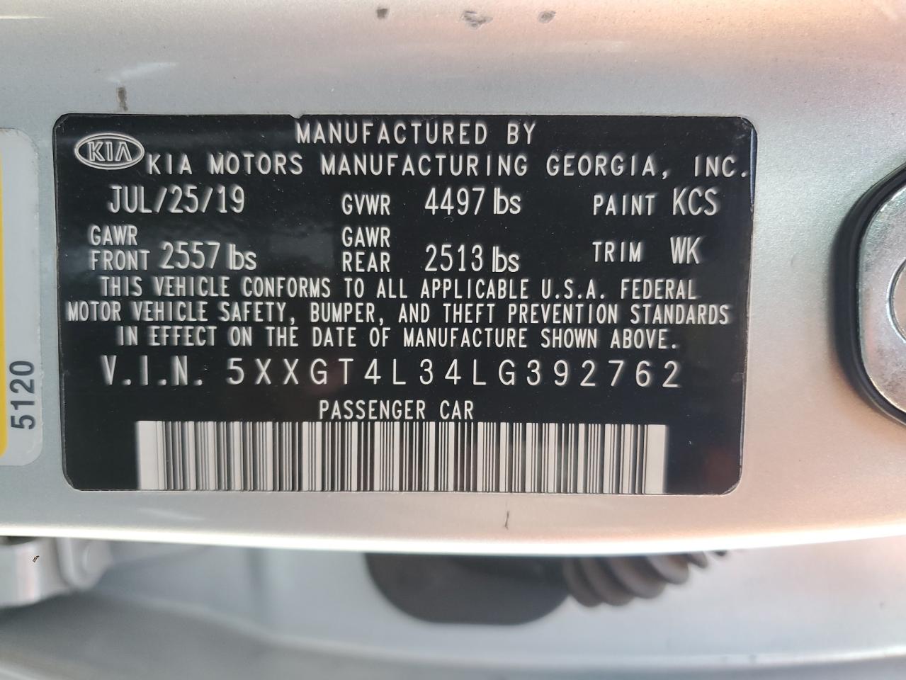 KIA OPTIMA 2.4 2020 г.в., (5XXGT4L34LG392762) из США