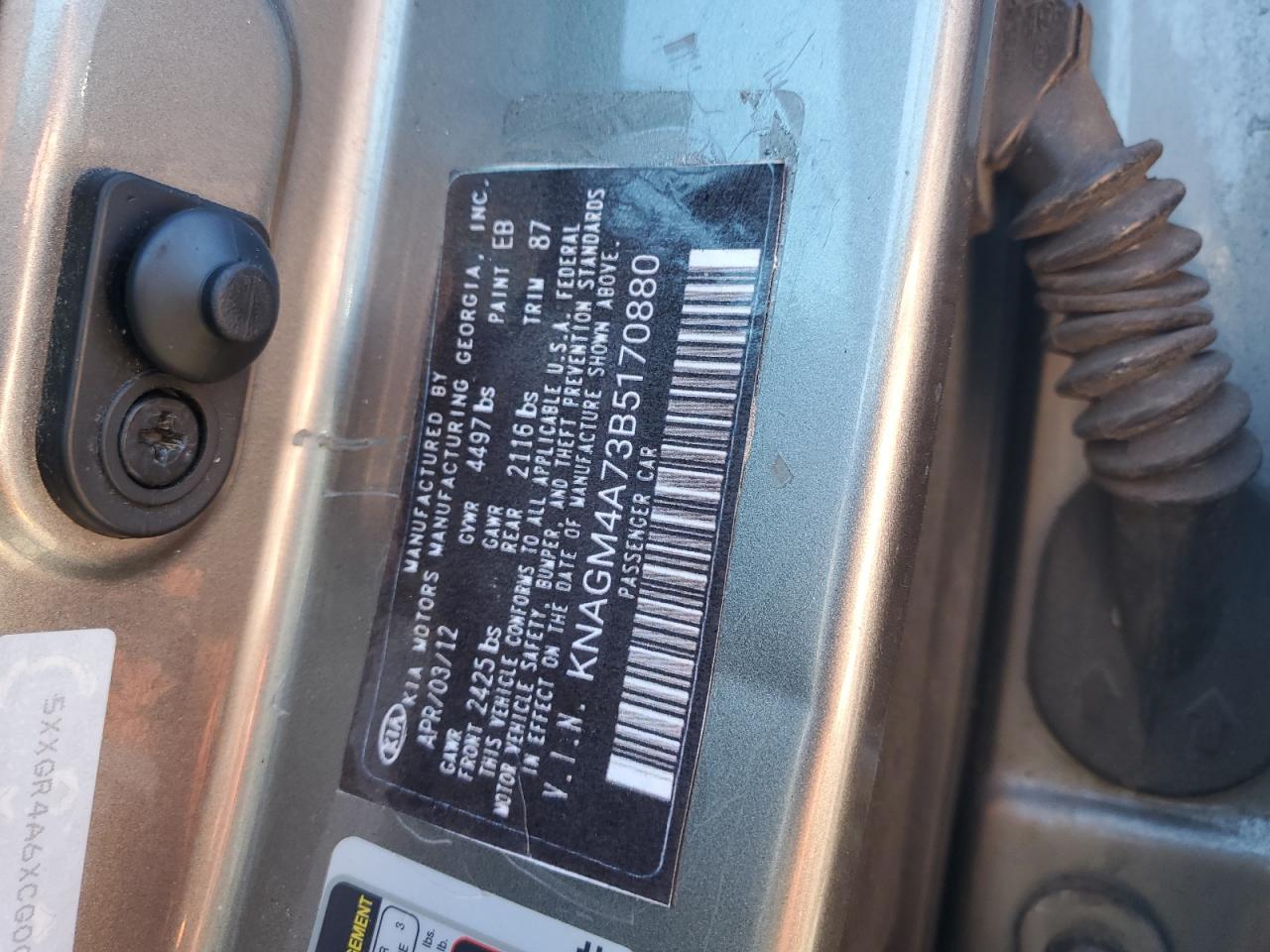 KIA OPTIMA 2.4 2011 г.в., (KNAGM4A73B5170880) из США