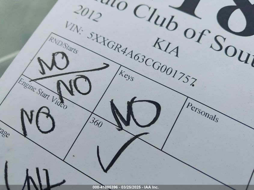 KIA OPTIMA 2.0 2012 г.в., Передний привод (5XXGR4A63CG001757) из США
