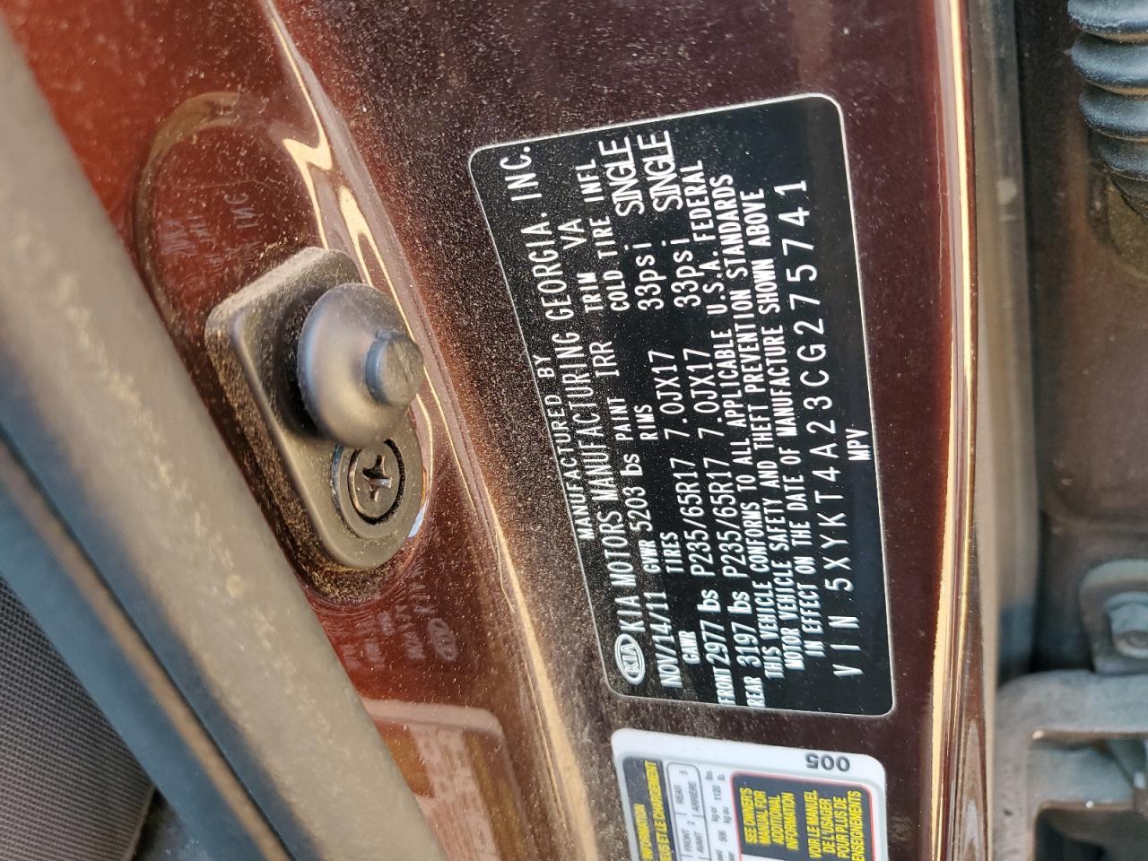 KIA SORENTO 3.5 2012 г.в., (5XYKT4A23CG275741) из США