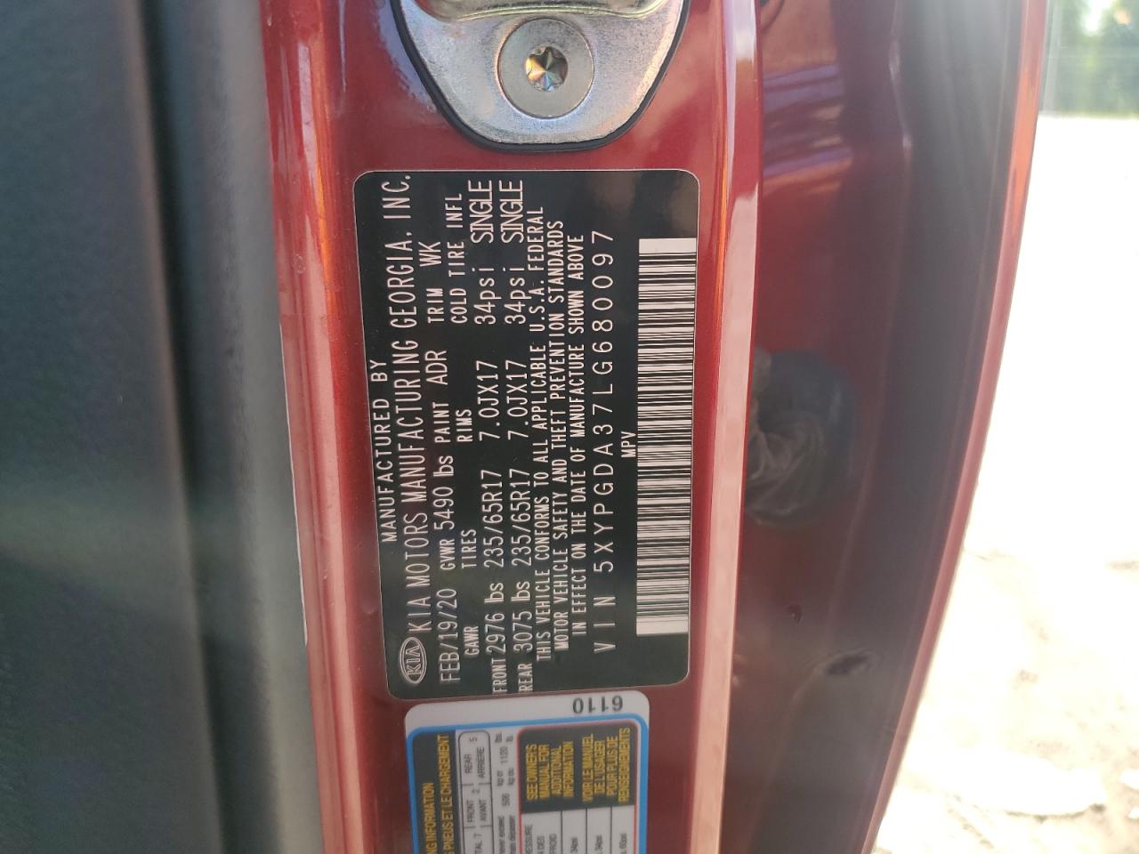2020 KIA SORENTO 2.4L L