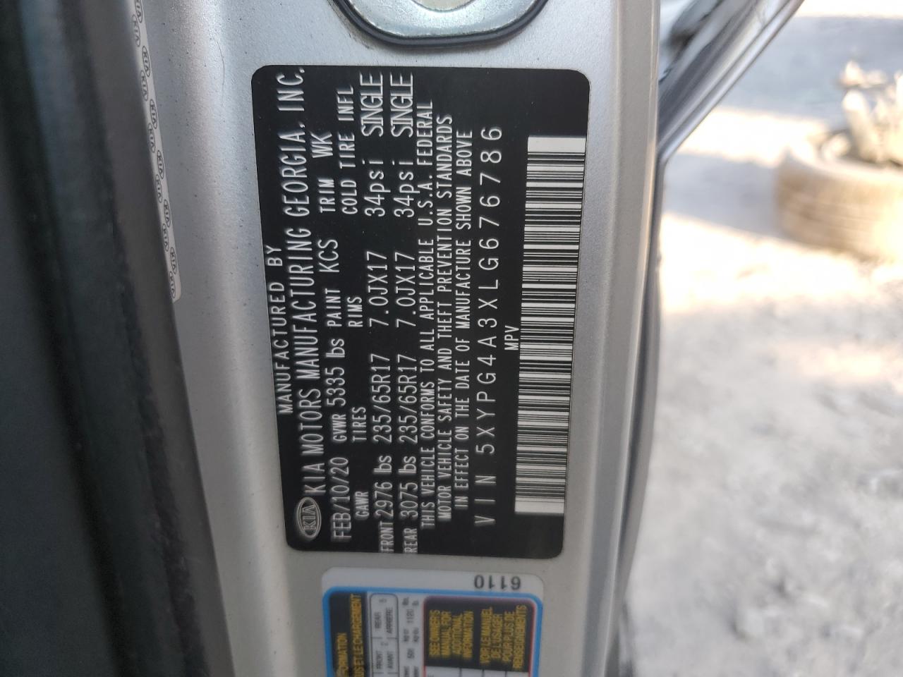KIA SORENTO 2.4 2020 г.в., (5XYPG4A3XLG676786) из США