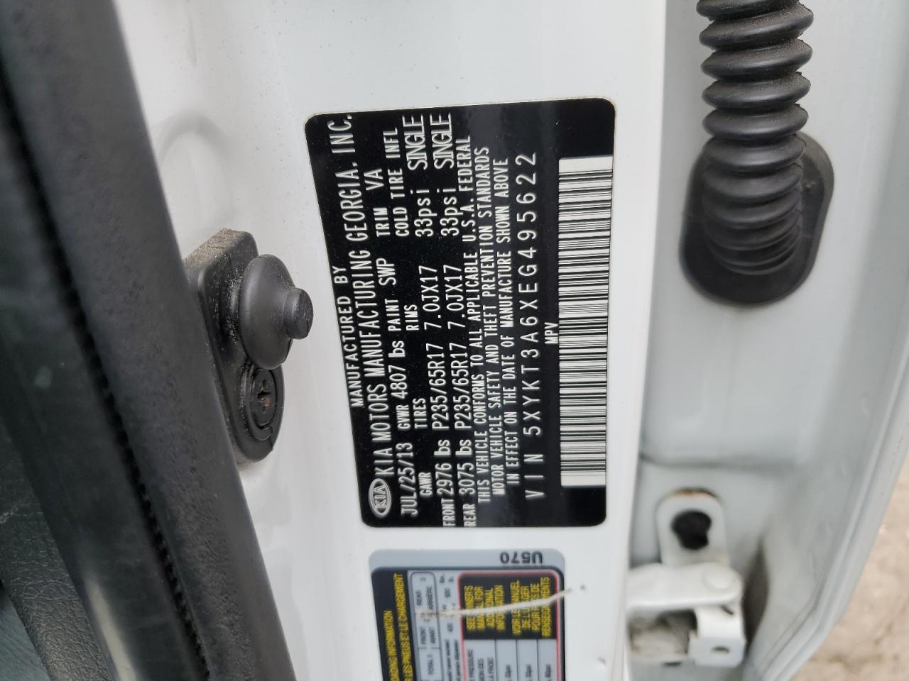 Цвет БелыйЦилиндры 4VIN 5XYKT3A6XEG495622Состояние ЗаводитсяПовреждение Передняя или задняя