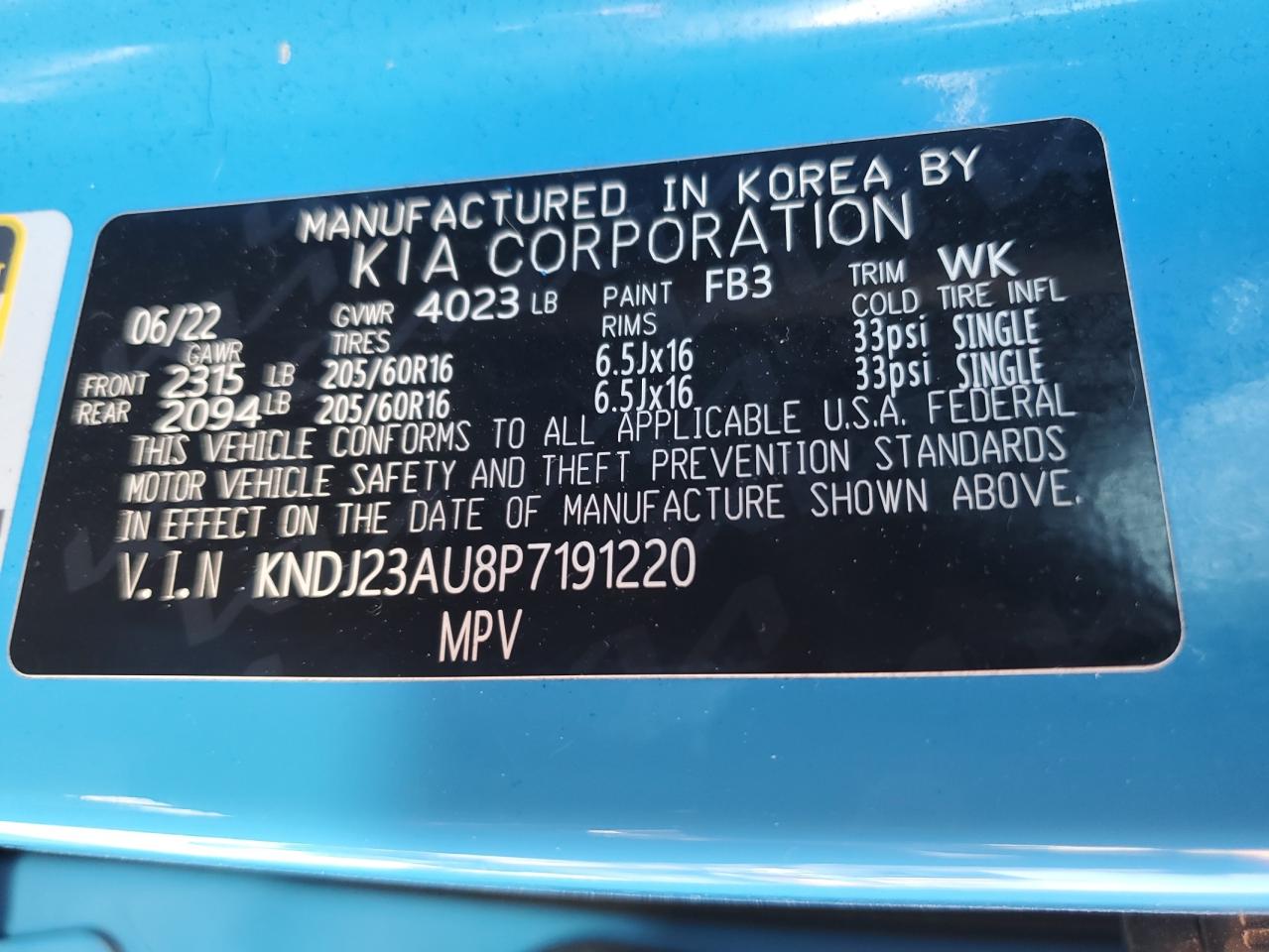 KIA SOUL 2.0 2023 г.в., (KNDJ23AU8P7191220) из США