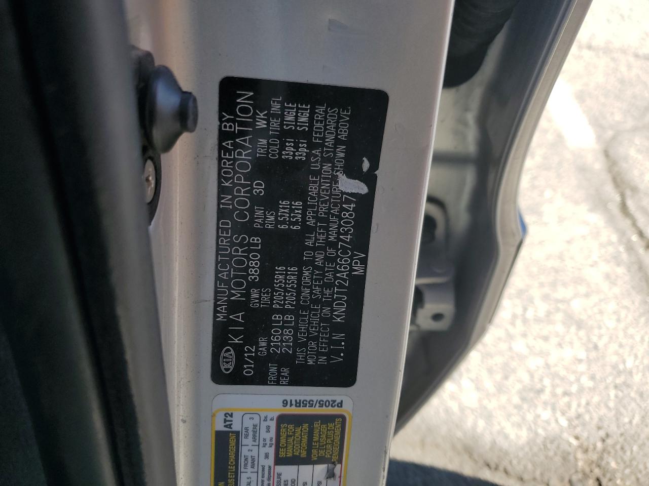 KIA SOUL 2.0 2012 г.в., (KNDJT2A66C7430847) из США
