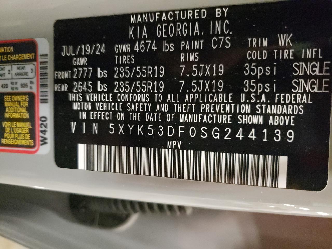 KIA SPORTAGE 2.5 2025 г.в., (5XYK53DF0SG244139) из США