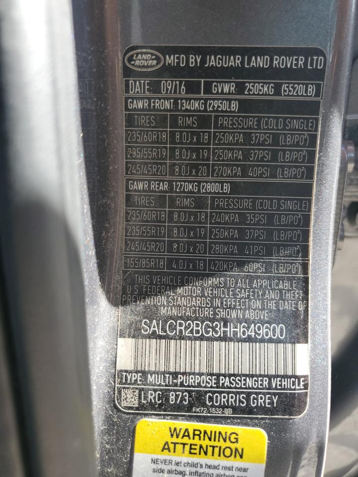 LAND ROVER DISCOVERY 2.0 2017 г.в., 4x4 с задним приводом (SALCR2BG3HH649600) из США
