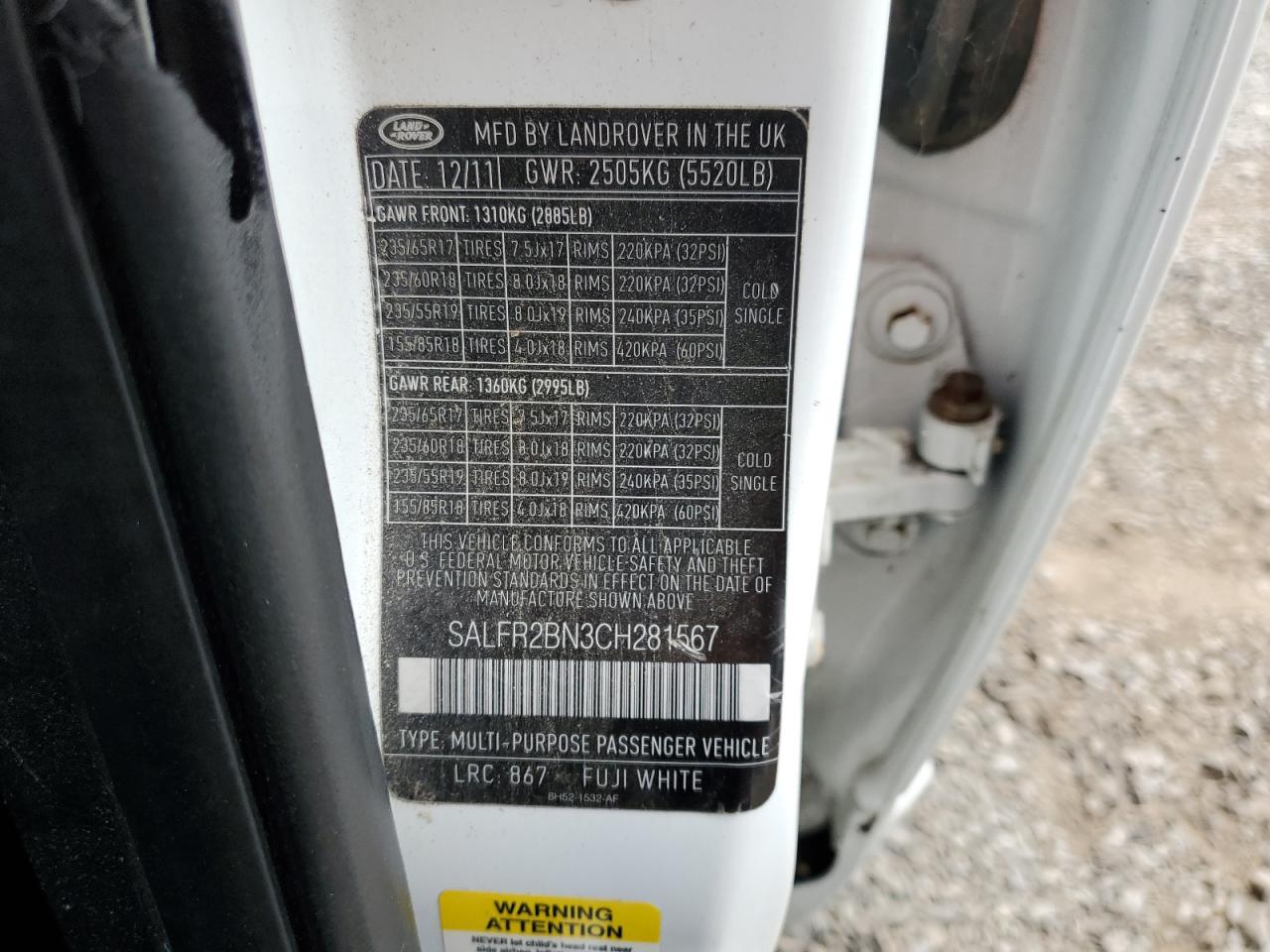 LAND ROVER LR2 3.2 2012 г.в., 4x4 с задним приводом (SALFR2BN3CH281567) из США