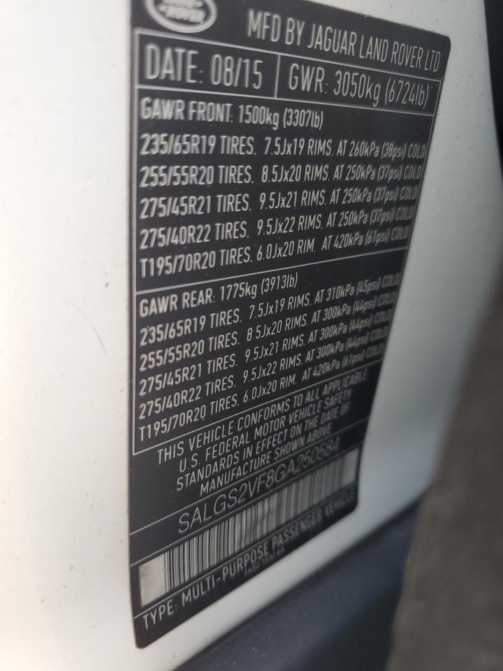 LAND ROVER RANGE ROVER 3.0 2016 г.в., 4x4 с задним приводом (SALGS2VF8GA250584) из США