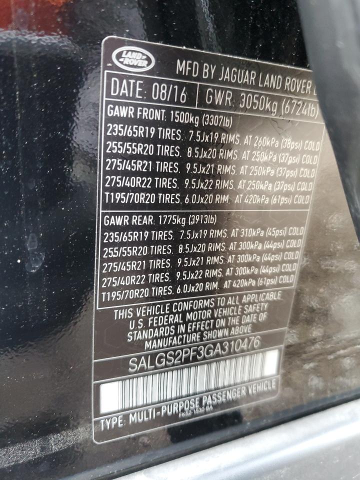 LAND ROVER RANGE ROVER 3.0 2016 г.в., 4x4 с задним приводом (SALGS2PF3GA310476) из США