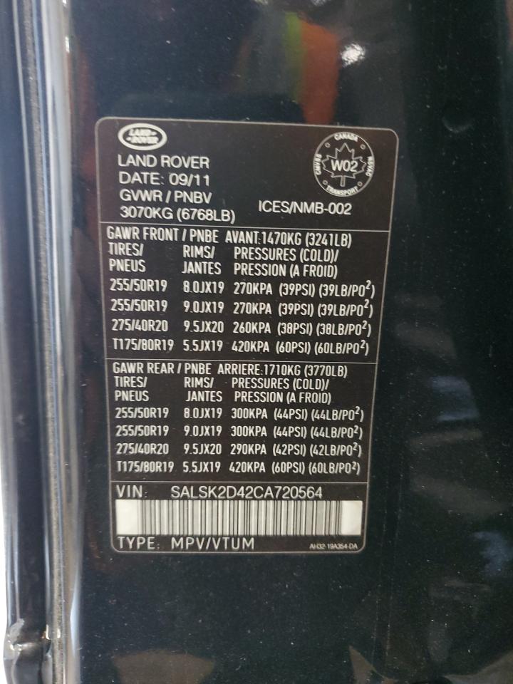 LAND ROVER RANGE ROVER 5.0 2012 г.в., 4x4 с задним приводом (SALSK2D42CA720564) из США