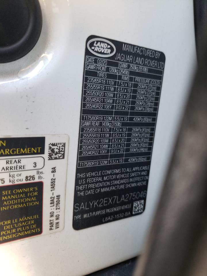 LAND ROVER RANGE ROVER 2.0 2020 г.в., Полный привод (SALYK2EX7LA275046) из США