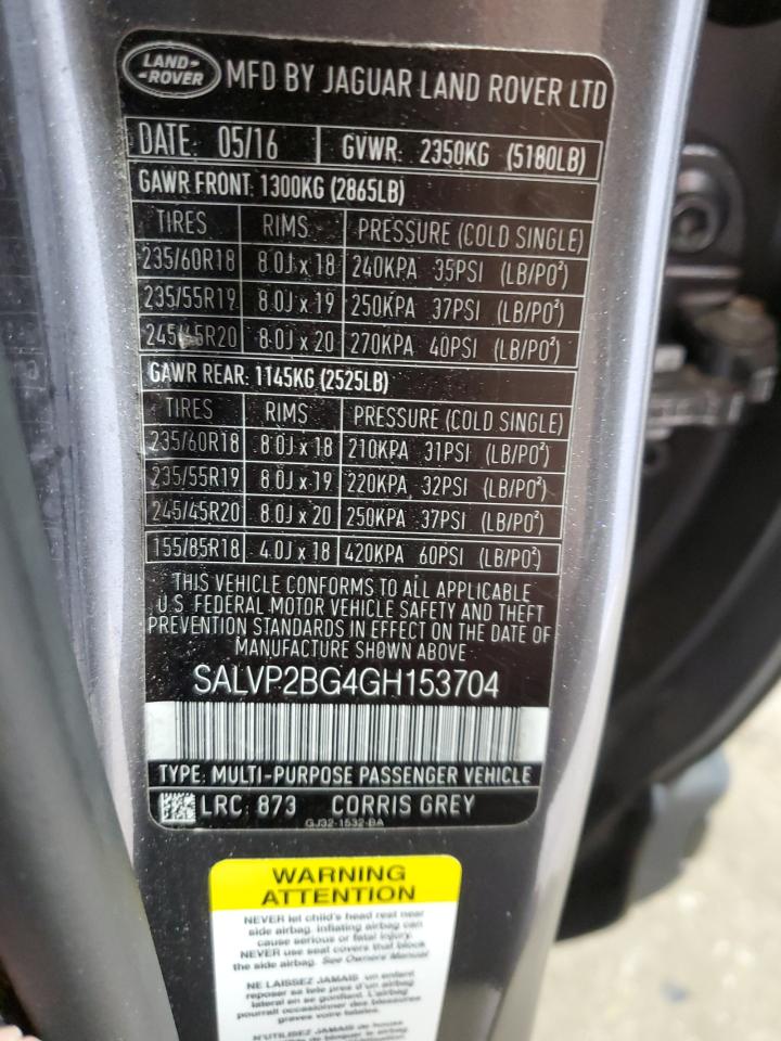 LAND ROVER RANGE ROVER 2.0 2016 г.в., Полный привод (SALVP2BG4GH153704) из США