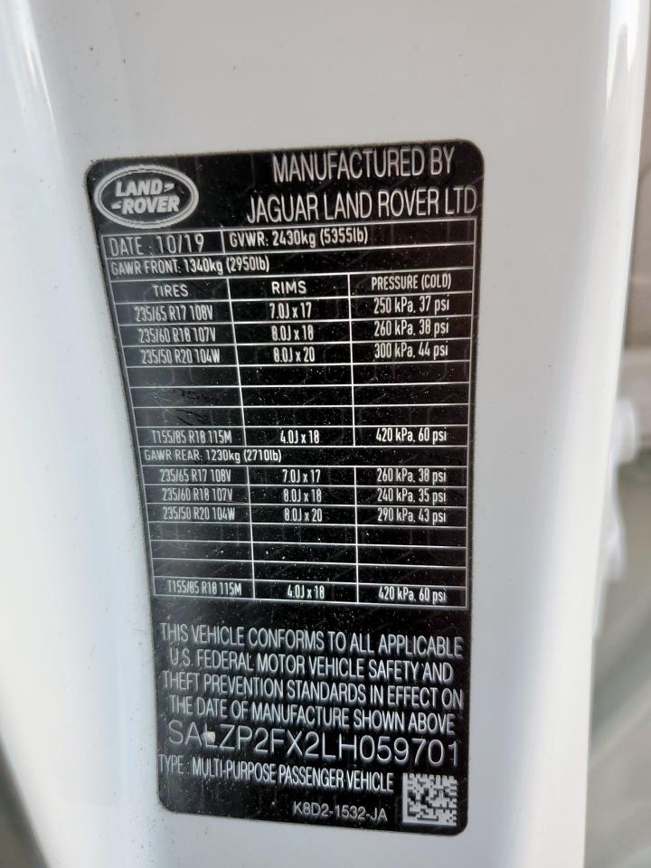 LAND ROVER RANGE ROVER 2.0 2020 г.в., Полный привод (SALZP2FX2LH059701) из США