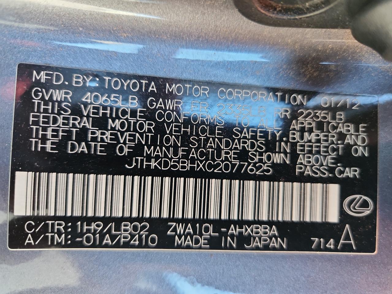 LEXUS CT 200H 1.8 2012 г.в., (JTHKD5BHXC2077625) из США