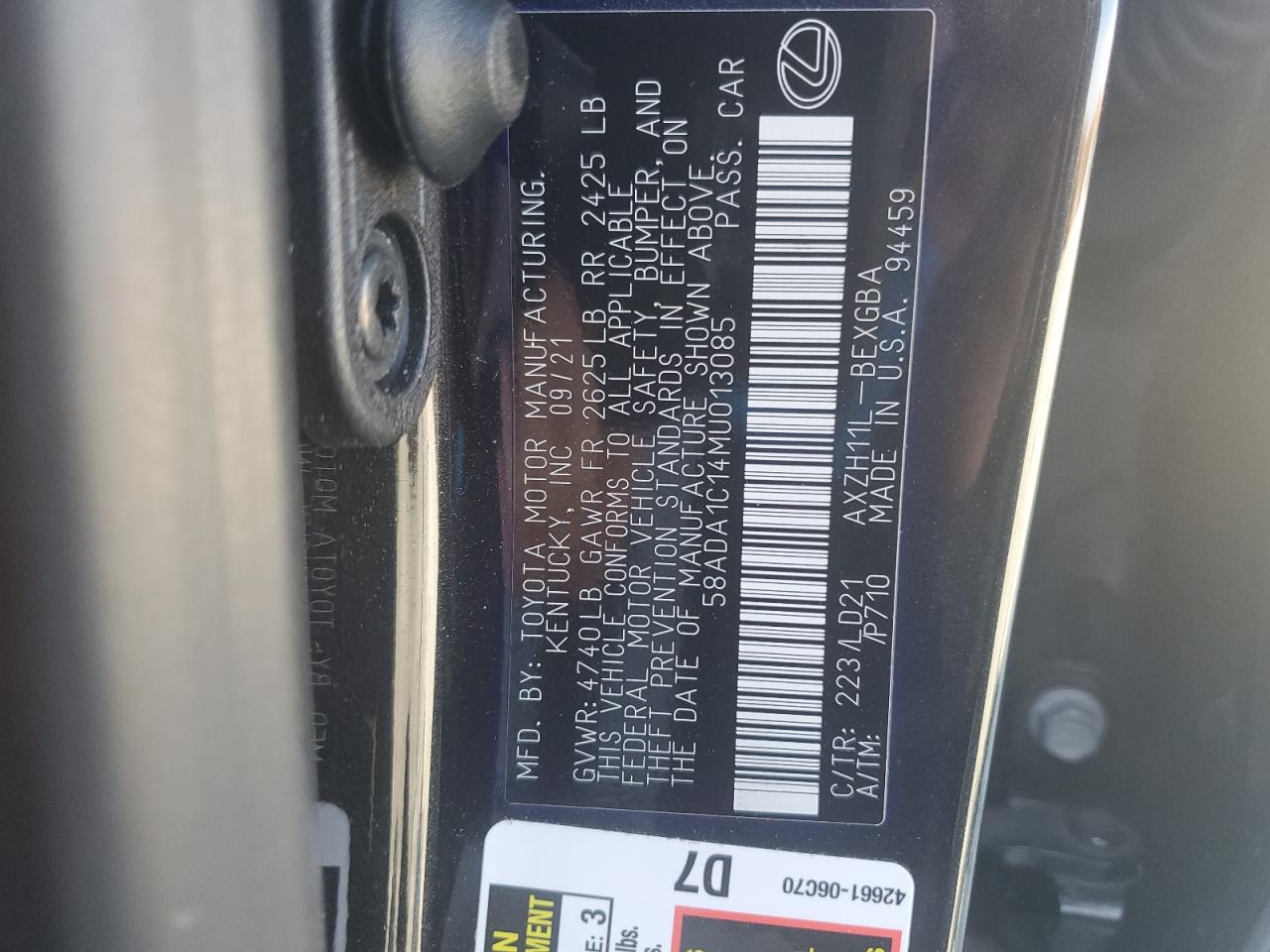 LEXUS ES 300H 2.5 2021 г.в., (58ADA1C14MU013085) из США