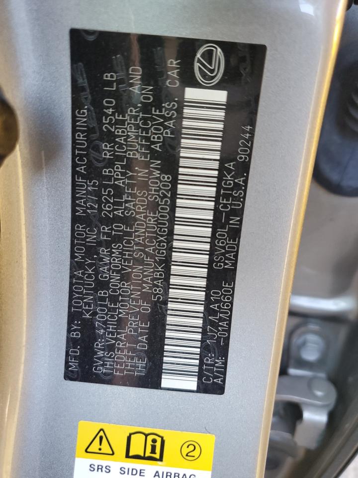 LEXUS ES 350 3.5 2016 г.в., (58ABK1GGXGU005208) из США
