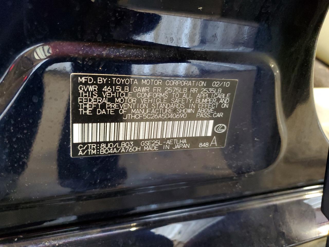 LEXUS IS 250 2.5 2010 г.в., Полный привод (JTHCF5C26A5040690) из США
