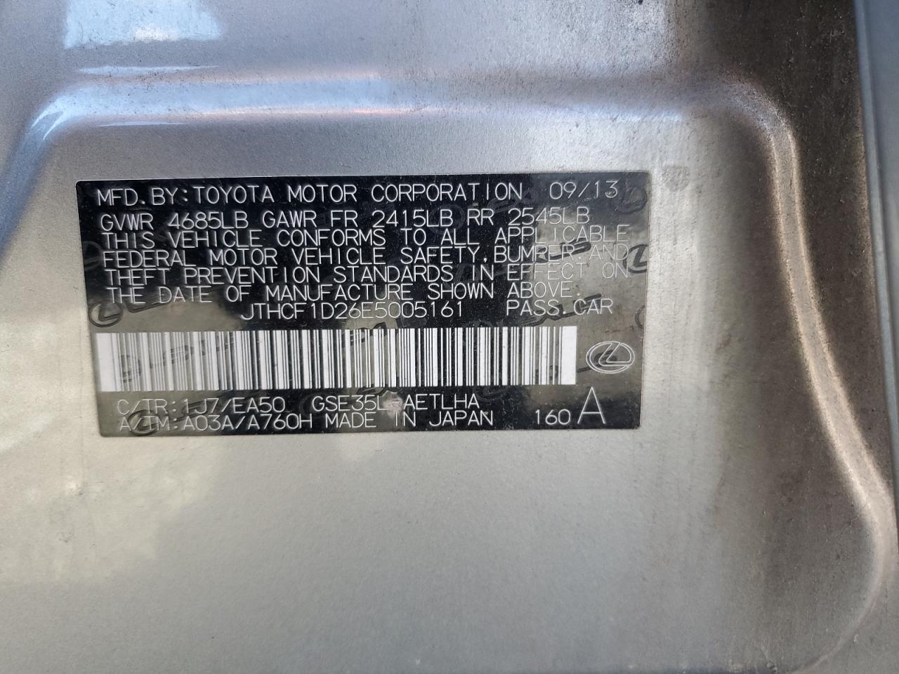 LEXUS IS 250 2.5 2014 г.в., Полный привод (JTHCF1D26E5005161) из США