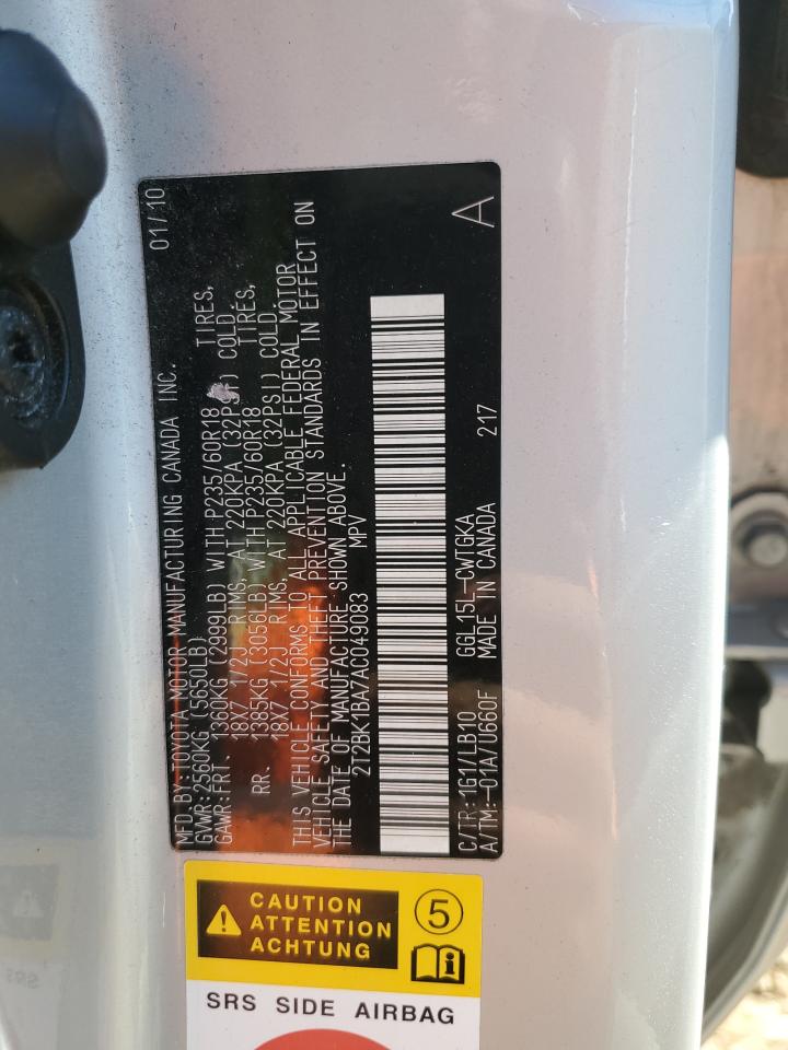 Цвет СеребряныйЦилиндры 6Привод Полный приводVIN 2T2BK1BA7AC049083Состояние Заводится и едет (проверено)Повреждение Передняя или задняя
