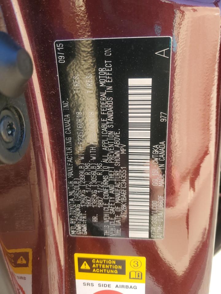 LEXUS RX 350 3.5 2015 г.в., Полный привод (2T2BK1BA6FC343551) из США