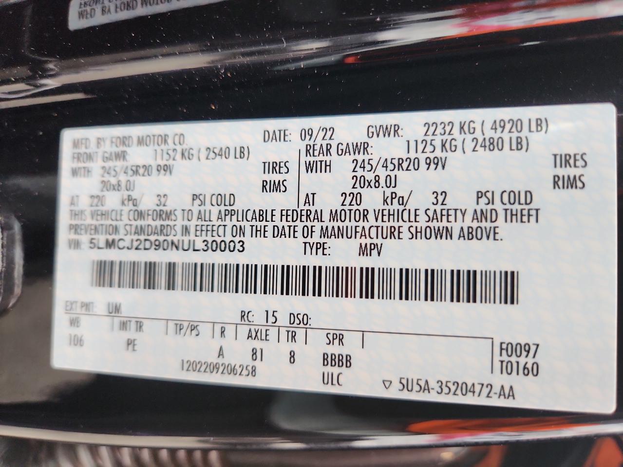 2022 LINCOLN CORSAIR RESERVE