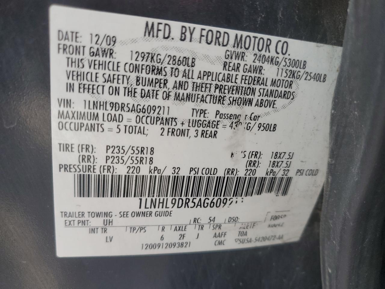 LINCOLN MKS 3.7 2010 г.в., (1LNHL9DR5AG609211) из США