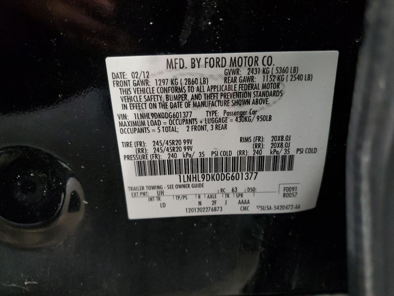 LINCOLN MKS 3.7 2013 г.в., (1LNHL9DK0DG601377) из США