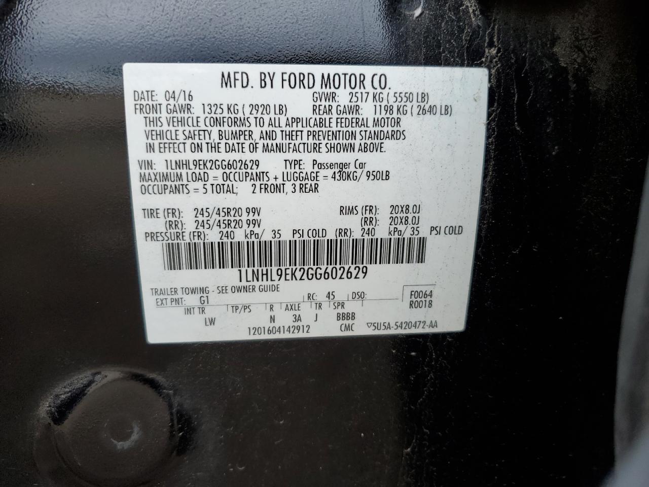 LINCOLN MKS 3.7 2016 г.в., Полный привод (1LNHL9EK2GG602629) из США