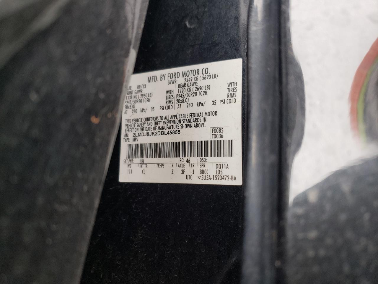 LINCOLN MKX 3.7 2013 г.в., Полный привод (2LMDJ8JK2DBL45855) из США