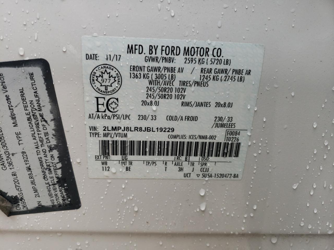 Цвет БелыйЦилиндры 6Привод Полный приводVIN 2LMPJ8LR8JBL19229Состояние Заводится и едет (проверено)Повреждение Передняя или задняяДата аукциона 2025-11-05