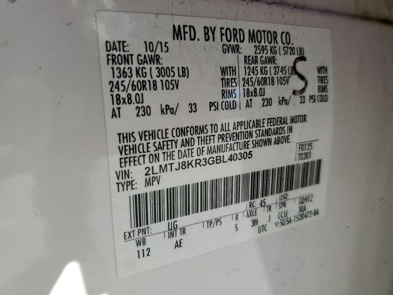 Цвет БелыйЦилиндры 6Привод Полный приводVIN 2LMTJ8KR3GBL40305Состояние Заводится и едет (проверено)Повреждение Передняя или задняя