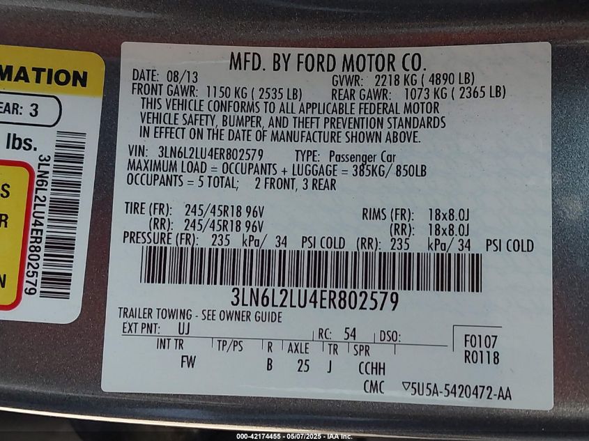 LINCOLN MKZ 2.0 2014 г.в., Передний привод (3LN6L2LU4ER802579) из США