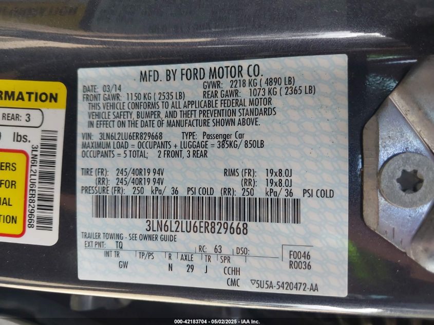 LINCOLN MKZ 2.0 2014 г.в., Передний привод (3LN6L2LU6ER829668) из США