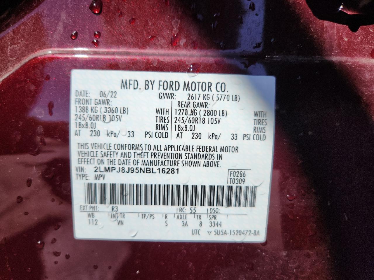 Цвет БордовыйЦилиндры 4Привод Полный приводVIN 2LMPJ8J95NBL16281Состояние Заводится и едет (проверено)Повреждение Передняя или задняя