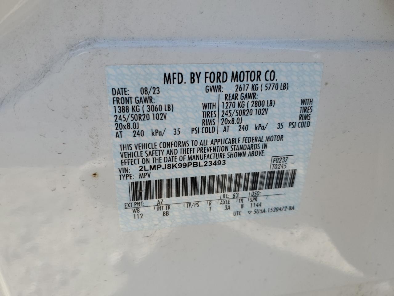 LINCOLN NAUTILUS 2.0 2023 г.в., Полный привод (2LMPJ8K99PBL23493) из США
