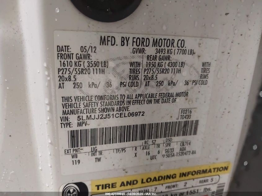 LINCOLN NAVIGATOR 5.4 2012 г.в., Полный привод (5LMJJ2J51CEL06972) из США
