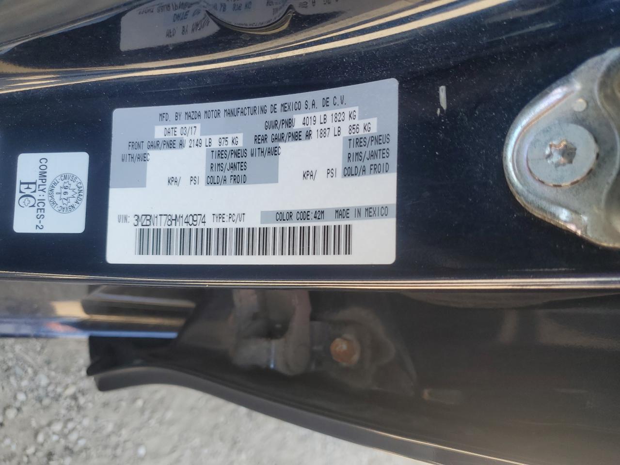 MAZDA 3 2.0 2017 г.в., (3MZBN1T78HM140974) из США