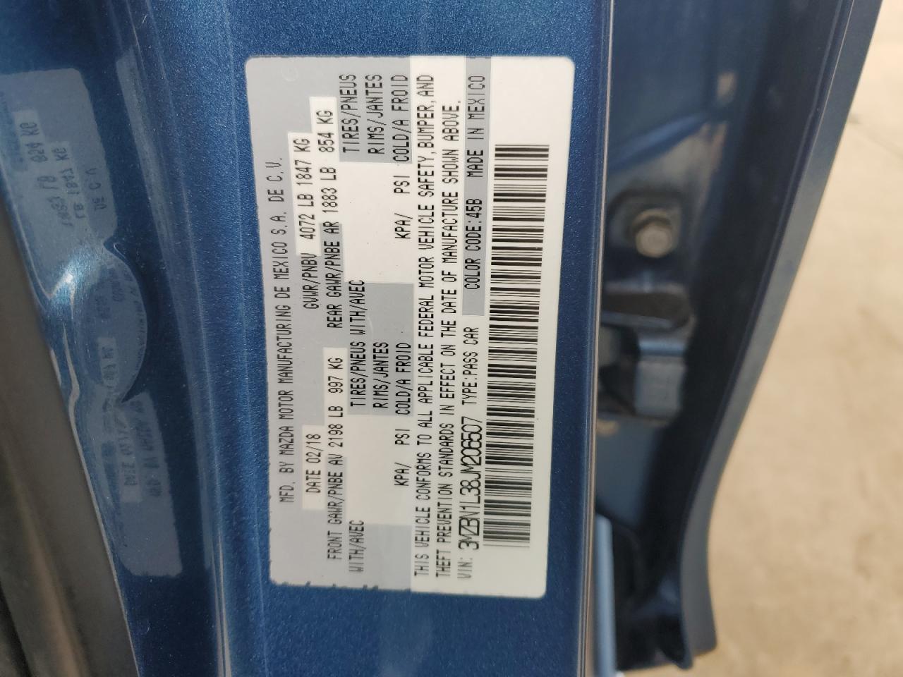 MAZDA 3 2.5 2018 г.в., (3MZBN1L38JM206507) из США